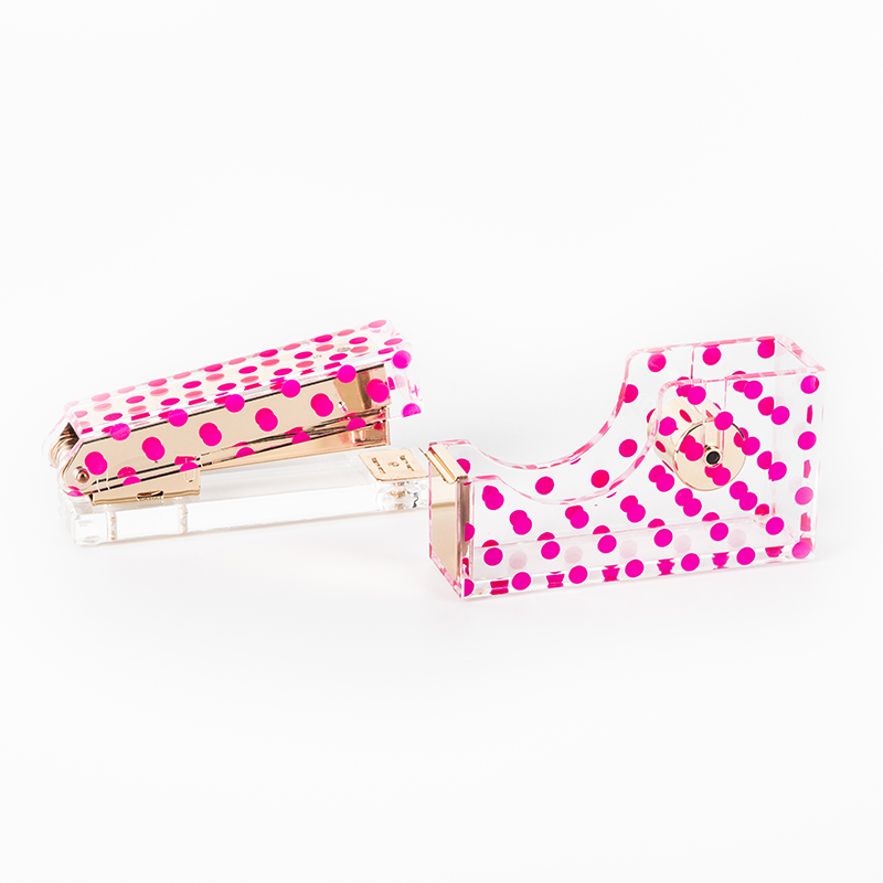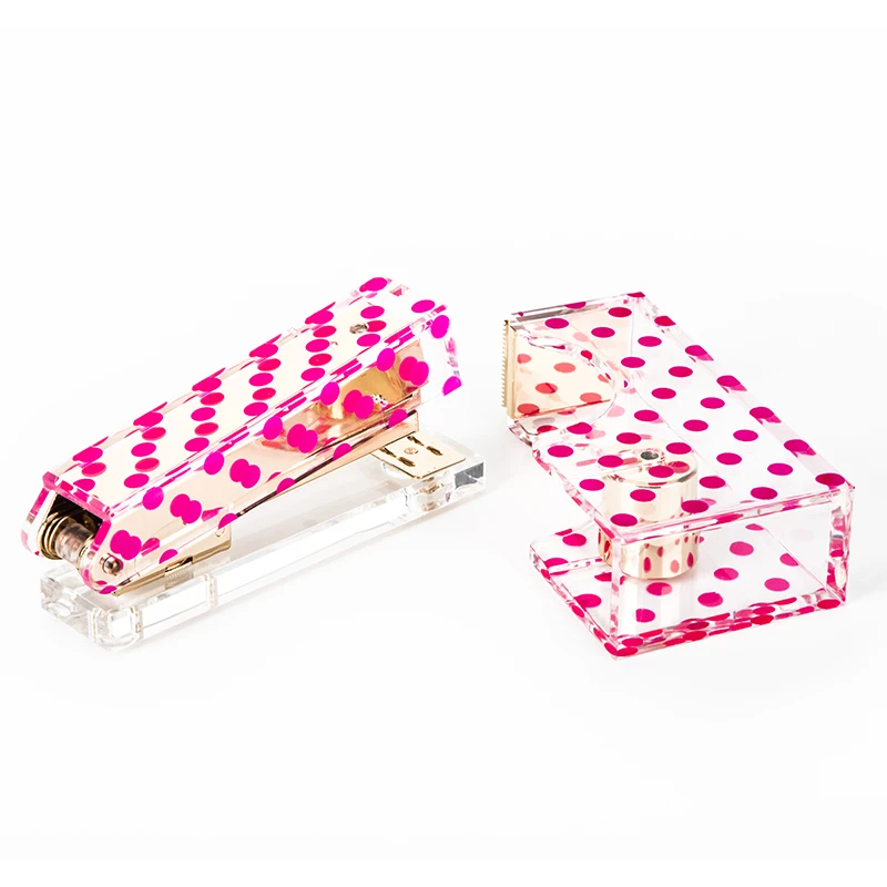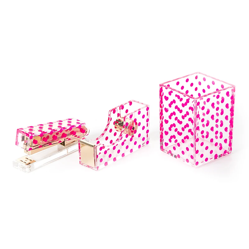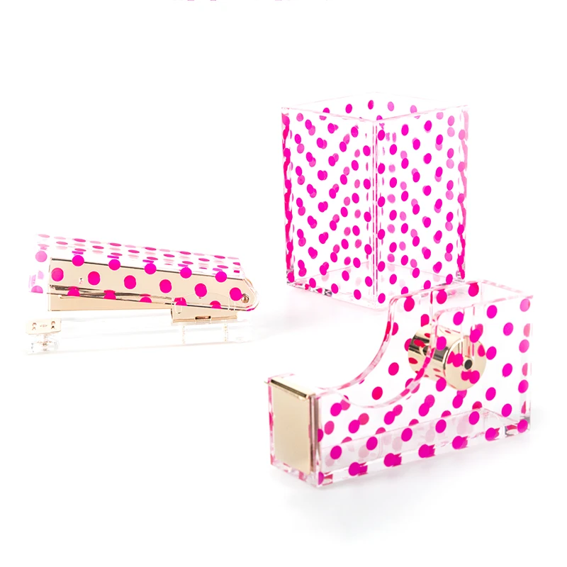 Custom Acrylic Stapler Pen Holder Tape Dispenser Set Modern Office Stationery, School Desk Supplies  Wholesale